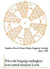 Моделът на Lösch също разработва шестоъгълна структура на пазарните зони, но това става на базата на чисто икономически принципи: