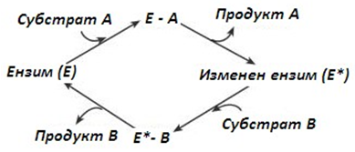 Фигура 50. Взаимодействие ензим-субстрат, тип „пинг-понг“