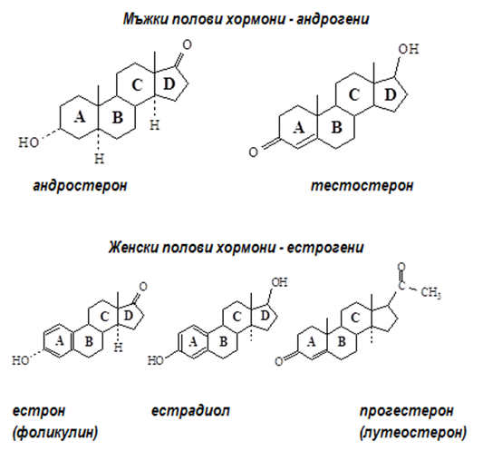 - стероли (стерини); y жлъчни киселини; y полови хормони;