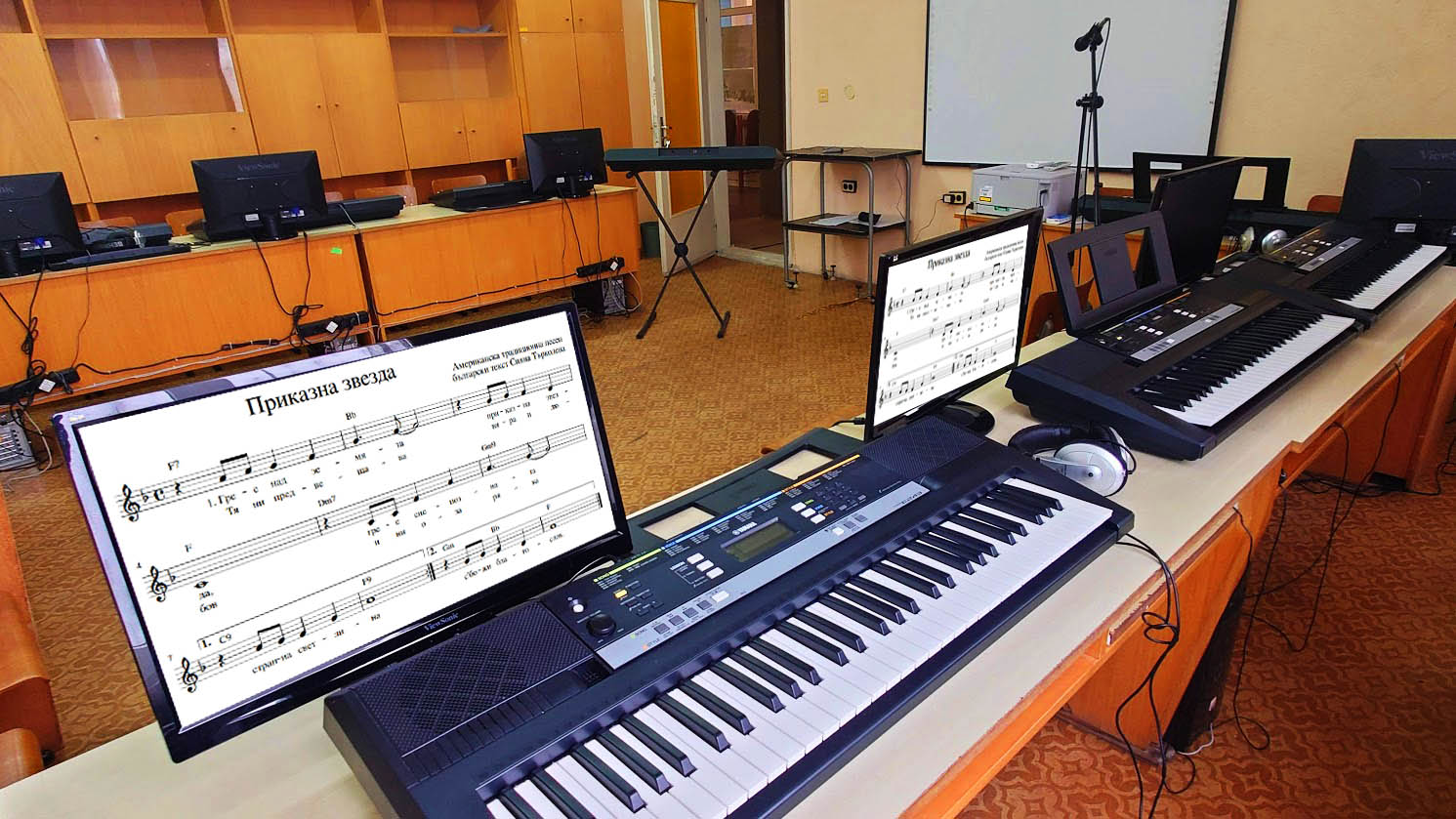 Курсът по Електронен музикален инструмент / Софтуер за нотация има за цел да развие у студентите първоначални умения за свирене, като затвърди в практически аспект знанията им от курса по Теория на музиката: четене и записване на нотен текст, динамични знаци, темпо, тембри, музикални инструменти и др. |